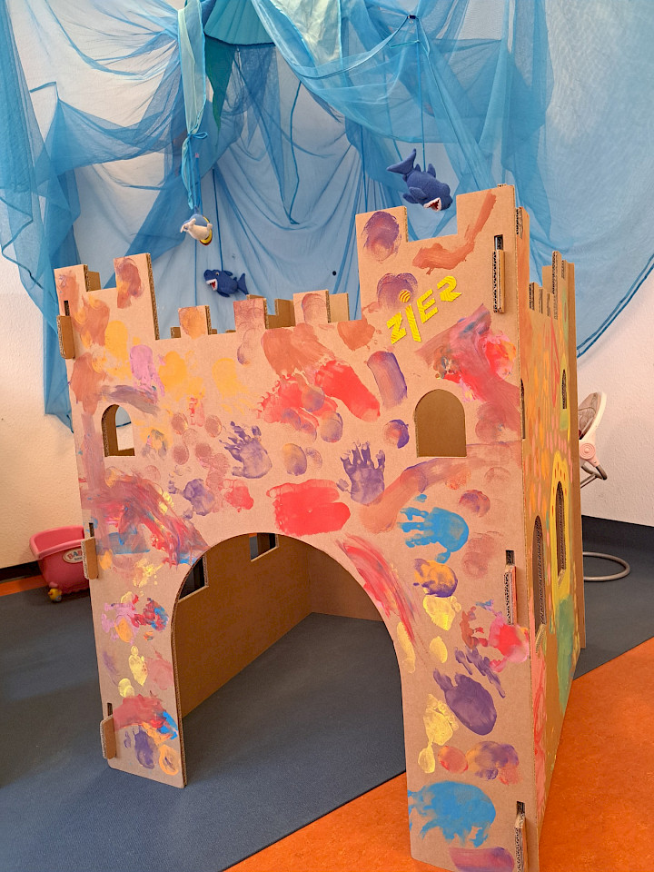 Im Rahmen einer großzügigen Aktion des Verpackungsunternehmens Udo Zier GmbH haben die Kinder vom Kinderhaus St. Elisabeth eine tolle Karton-Burg geschenkt bekommen. Nachdem diese zunächst fantasievoll bemalt, betupft und beklebt wurde, wird sie nun mit viel Freude bespielt.